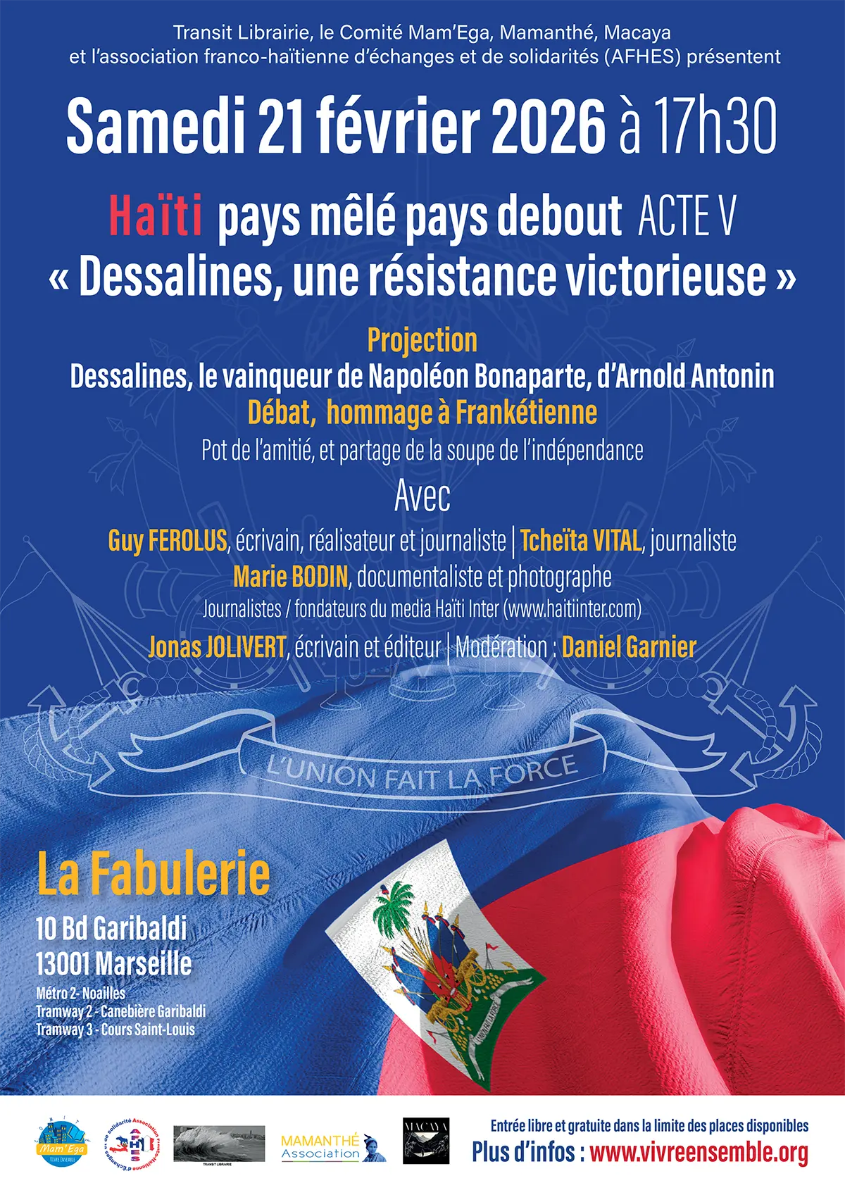 Le Comité Mam’Ega, l’association Mamanthé, l’association franco-haïtienne d’échanges et de solidarités (AFHES), Transit Librairie, l’association Macaya, présentent